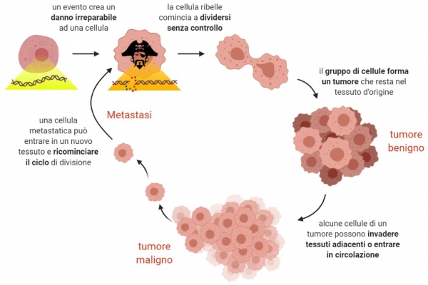 A guardarlo così nella sua totalità, questo processo è incredibilmente complicato e delicato, e non ci deve sorprendere che qualcosa, a volte, possa andare storto. Questo errore può significare la nascita di una cellula “ribelle”, che non si comporta come le altre; quella che noi chiamiamo una cellula tumorale.
